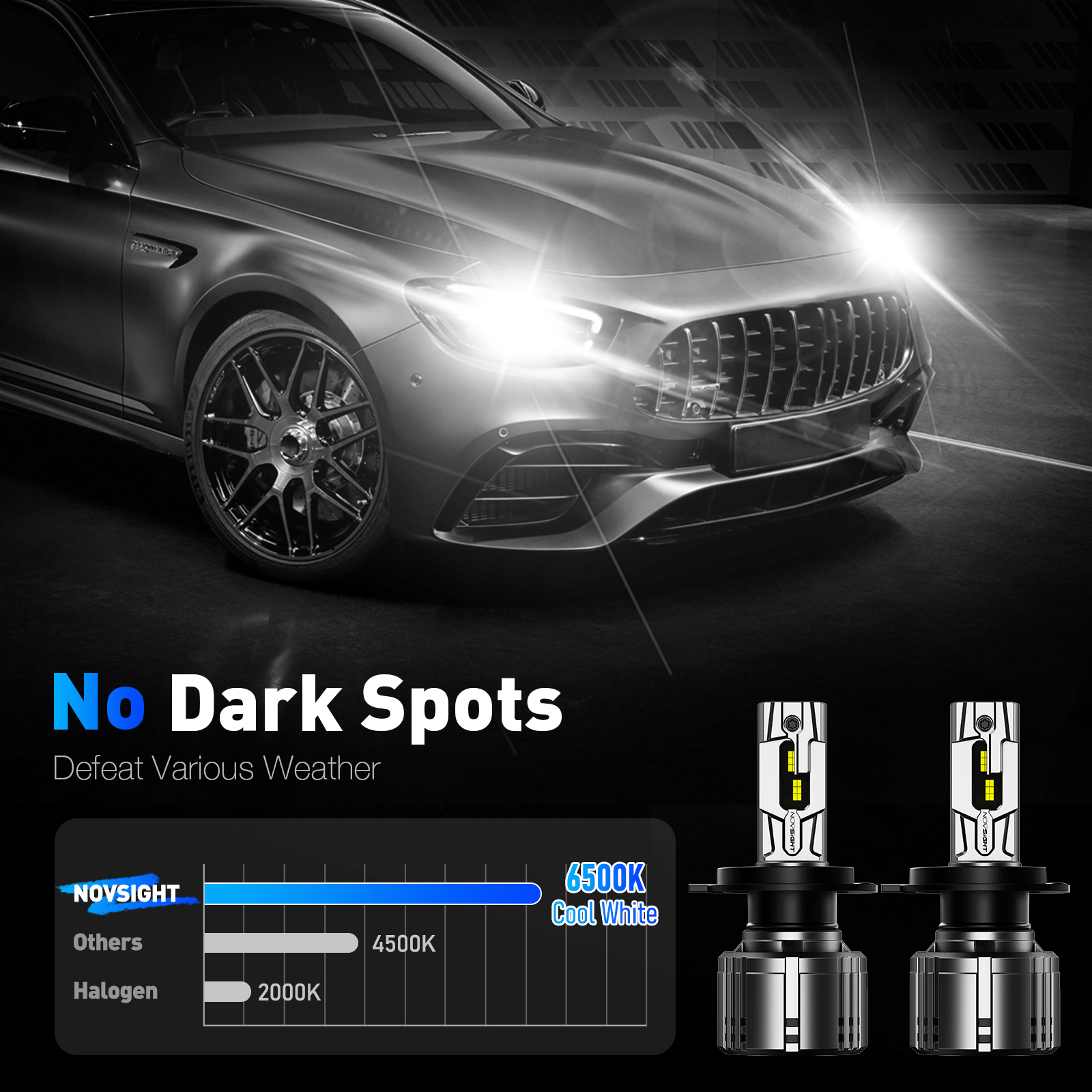 The Novsight T1 H11 LED Headlight delivers ultra-bright, high-clarity illumination for car low beam and fog light applications. With 50,000 lumens and 240W total output, this LED bulb creates a perfect 6500K beam pattern for maximum road visibility without blinding oncoming traffic..